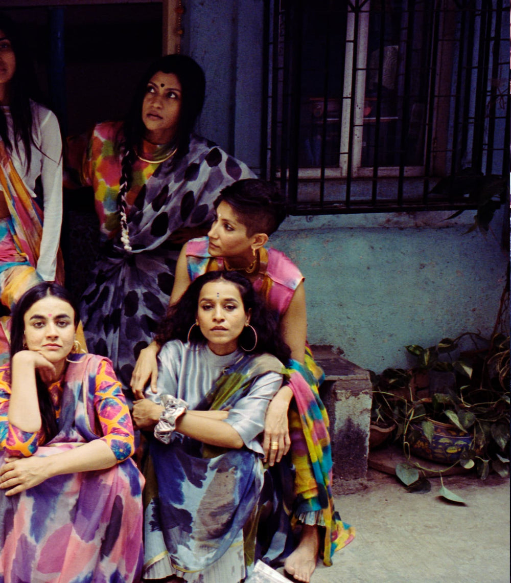 We took it full circle and shot these hand-painted, chiffon Holi Sarees at our favourite Asha Aunty's house. Right in front of our first ever NBNW studio/ home/ community paradise. This space is sentimental and the energy here gave birth to so many beautiful relationships and art stuff.